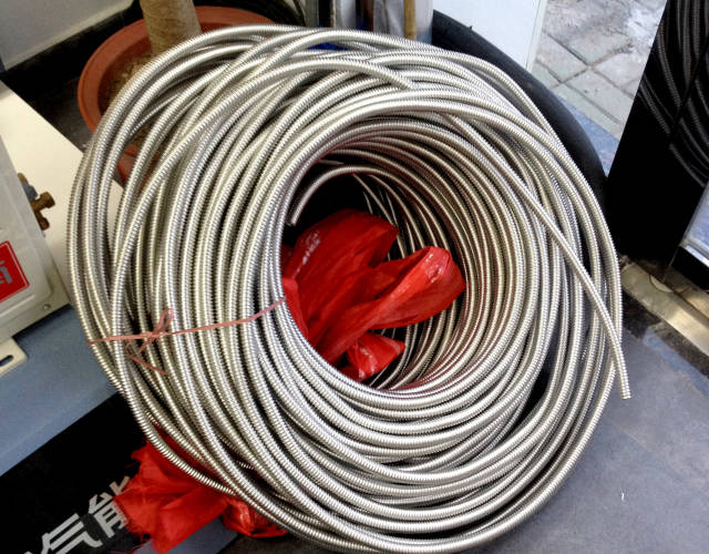 編織軟管不建議使用,長期暴露在室外,如果不做保溫,編織軟管很容易撕開;鋁塑管使用較多,如果使用質量較好的鋁塑管是不容易出現問題的,因為在鋁塑管里層有一層鋁,但是在安裝過程中要注意做好保溫;PPR管使用也較多,但是它的一大弊端是裝好了不能動,小動一下也容易錯位,基本上少見弧形的PPR管,如果碰到施工有難度的場地,不建議使用PPR管。不銹鋼波紋管,可根據使用量的多少買一卷或者一段來使用,不怕彎折,而且不銹鋼材質看起來更加上檔次,做保溫也方便,目前的使用范圍更加廣泛,建議選用不銹鋼波紋管來做家用熱水器單機或熱水工程的管路施工。